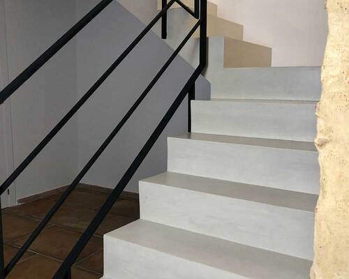 Microcement works well on floors, walls, bathrooms, kitchens, hallways, and stairs. It’s used in both residential and commercial spaces when you want a clean, continuous finish.